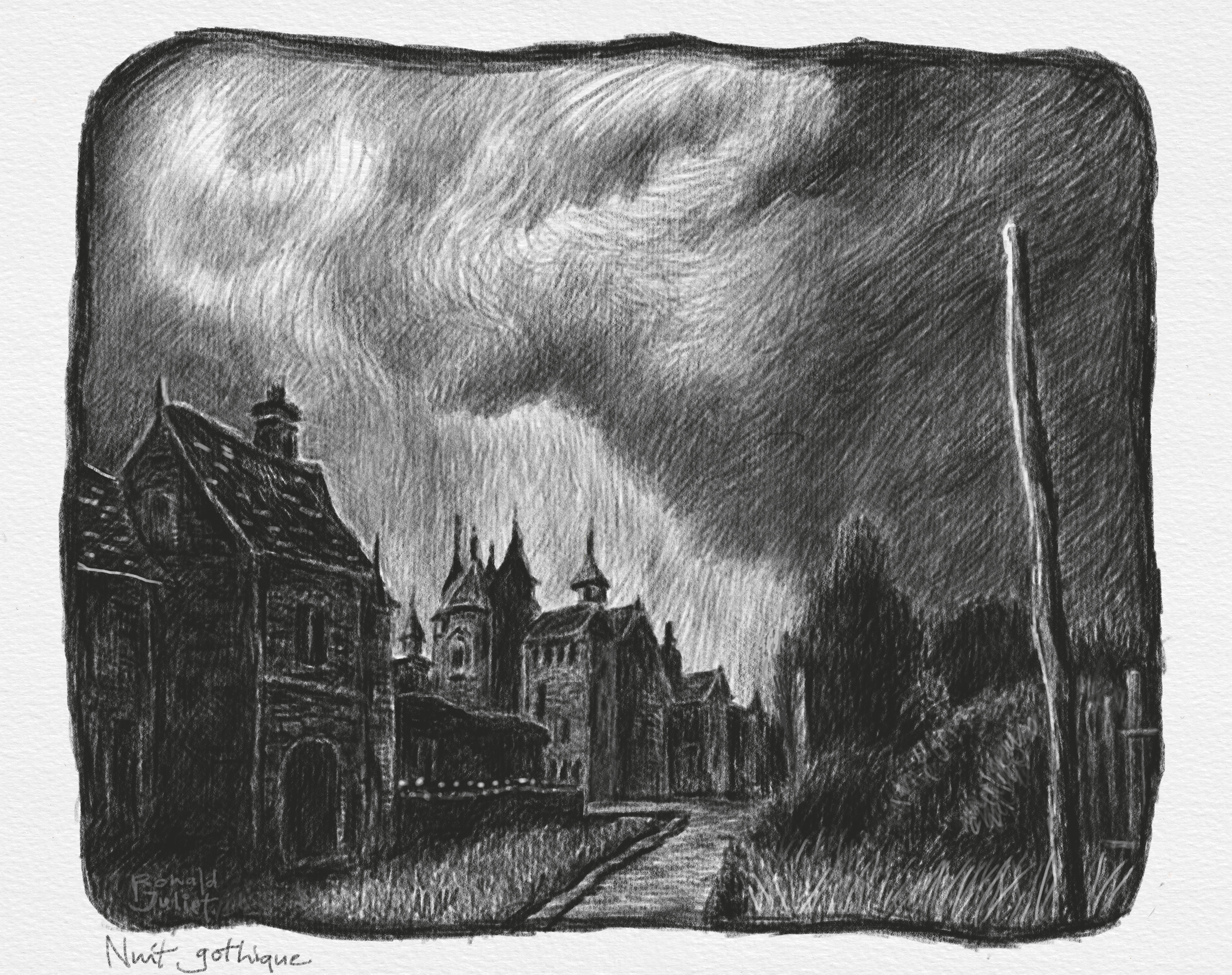 nuit gothique – gothic night September 5, 2025September 5, 2025 | ronald juliet crayon fusain, A4 , charcoal pencil