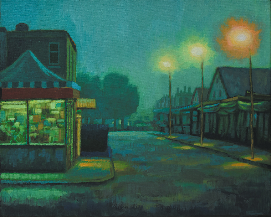 rue tranquille – quiet street April 6, 2025 | ronald juliet Acrylique sur toile 40×50 cm. Acrylic on canvas