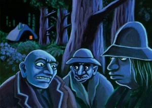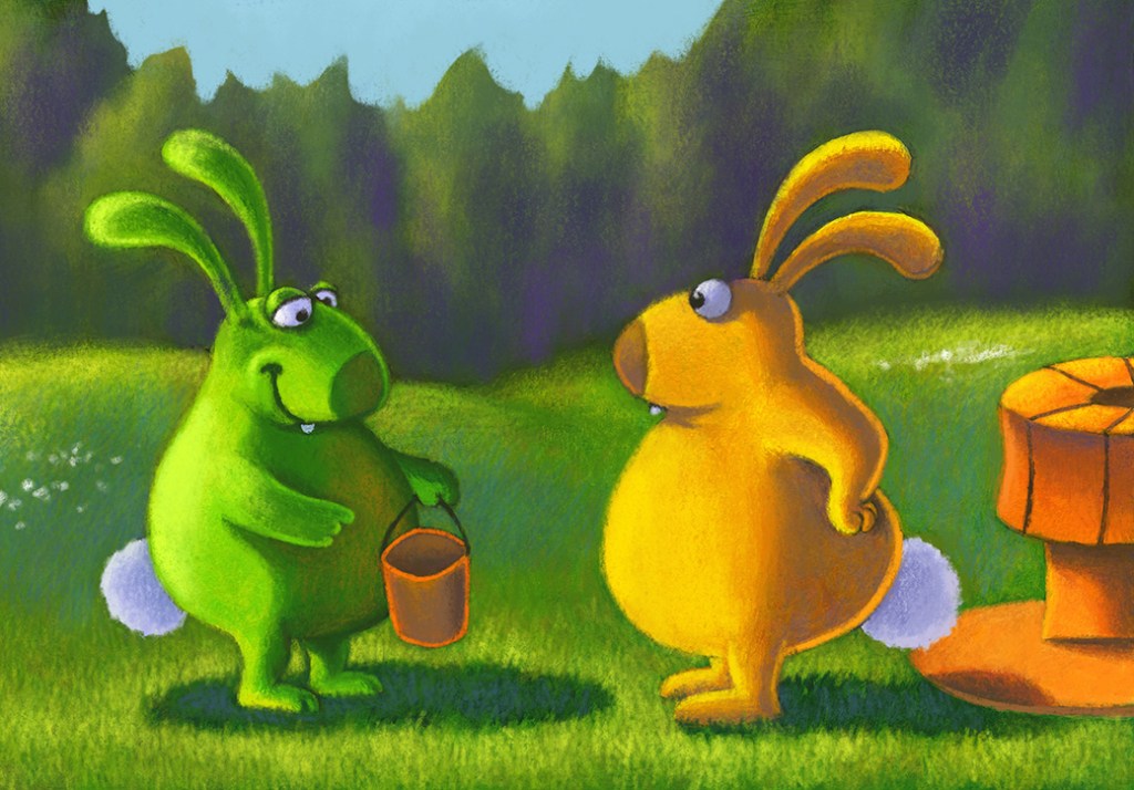 Here are some images from the two children kamishibaï I did a few years ago. There is “Musicians of Bremen”, and “Water from the well”, a story I wrote about sharing.