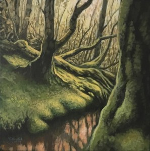 arbres et rivière – trees and river July 28, 2024August 28, 2024 | ronald juliet acrylique sur toile 30X30 – acrylic on canvas